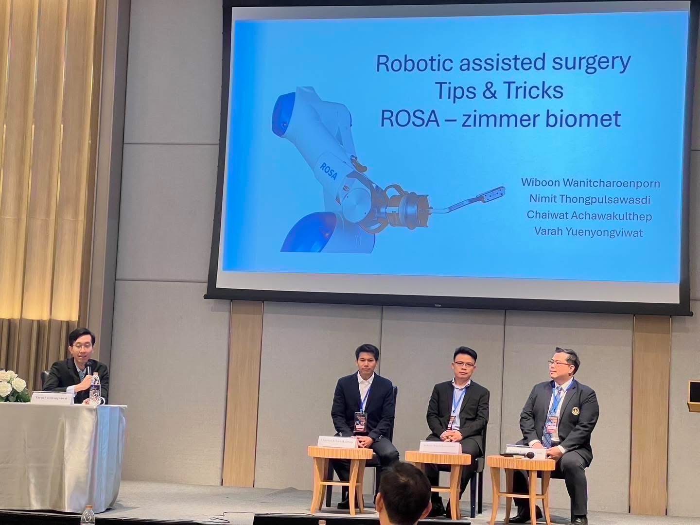 ทั้งนี้ นพ.นิมิตร ทองพูลสวัสดิ์ รองผู้อำนวยการศูนย์การแพทย์กาญจนาภิเษก ได้บรรยายในหัวข้อ Robotic assisted surgery Zimmer ในวันที่ 8 พฤษภาคม 2568 และ พว.อนิรุทธิ์ สมใจ พยาบาลวิชาชีพ งานการพยาบาลผ่าตัด ได้บรรยายในหัวข้อ “ROSA (Zimmer)” ในวันที่ 9 พฤษภาคม 2568
