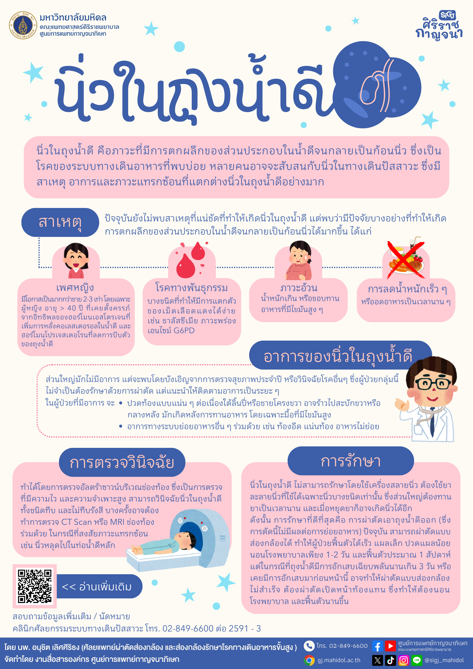 นิ่วในถุงน้ำดี คือภาวะที่มีการตกผลึกของส่วนประกอบในน้ำดีจนกลายเป็นก้อนนิ่ว ซึ่งเป็นโรคของระบบทางเดินอาหารที่พบบ่อย หลายคนอาจจะสับสนกับนิ่วในทางเดินปัสสาวะ ซึ่งมีสาเหตุ อาการและภาวะแทรกซ้อนที่แตกต่างนิ่วในถุงน้ำดีอย่างมาก