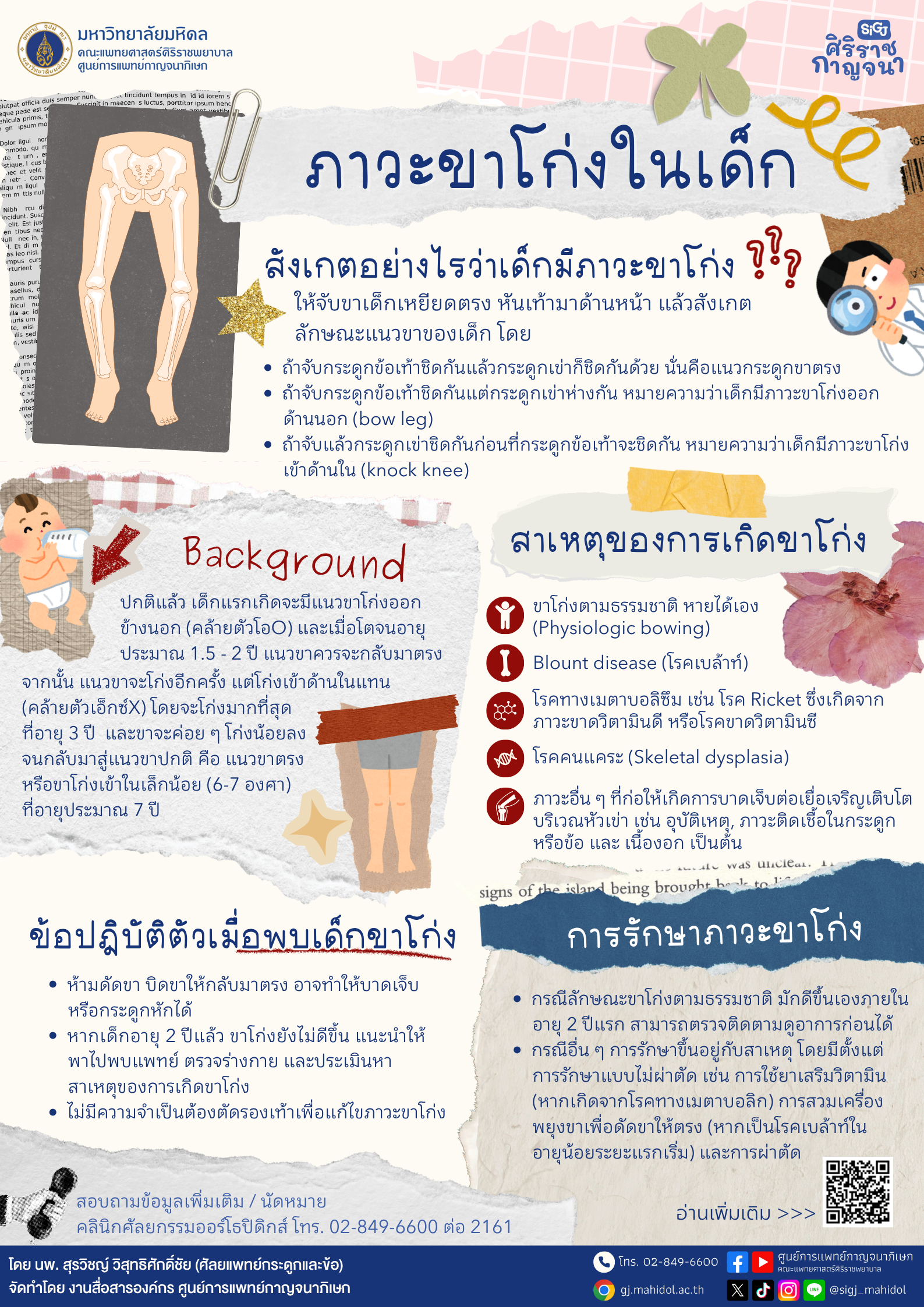 - ถ้าจับกระดูกข้อเท้าชิดกันแต่กระดูกเข่าห่างกัน หมายความว่าเด็กมีภาวะขาโก่งออกด้านนอก (bow leg)