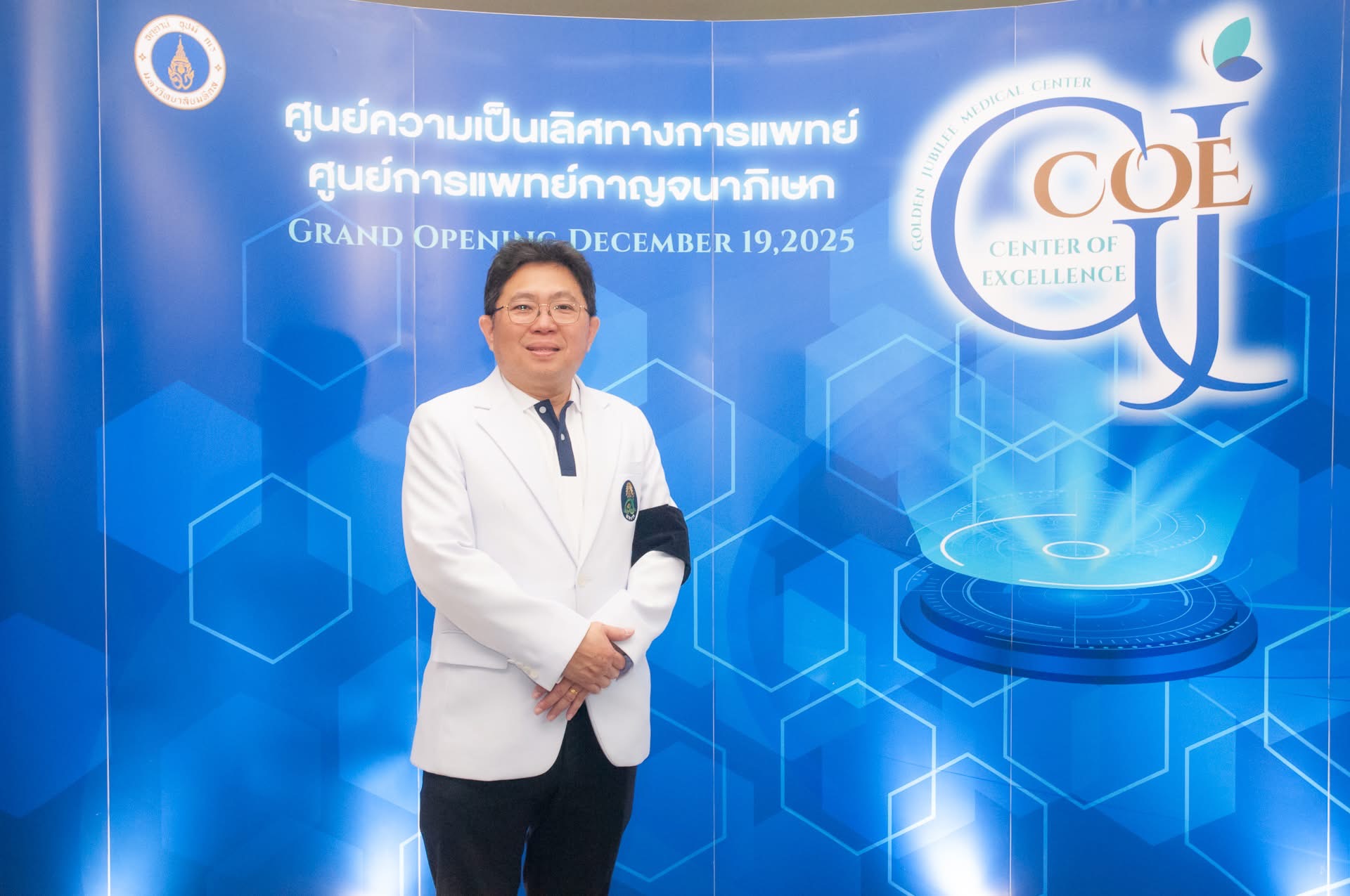ศูนย์การแพทย์กาญจนาภิเษก คณะแพทยศาสตร์ศิริราชพยาบาล มหาวิทยาลัยมหิดล จัดงานเปิดตัวศูนย์ความเป็นเลิศทางการแพทย์ ศูนย์การแพทย์กาญจนาภิเษก (GJCOE – GOLDEN JUBILEE CENTER OF EXCELLENCE) เมื่อวันที่ 19 ธันวาคม 2568 โดย รศ. นพ.ธีระ กลลดาเรืองไกร ผู้อำนวยการศูนย์การแพทย์กาญจนาภิเษก เป็นประธานเปิดงาน พร้อมด้วย นพ.ตะวัน อินทิยนราวุธ ประธานคณะกรรมการศูนย์ความเป็นเลิศทางการแพทย์ ศูนย์การแพทย์กาญจนาภิเษก ศ.คลินิกเกียรติคุณ พญ.อัญชลี ชูโรจน์ ที่ปรึกษาศูนย์รังสีร่วมรักษา โรงพยาบาลศิริราช ศ. นพ.กีรติ เจริญชลวานิช หัวหน้าภาควิชาศัลยศาสตร์ออร์โธปิดิคส์และกายภาพบำบัด คณะแพทยศาสตร์ศิริราชพยาบาล ตลอดจนคณะผู้บริหาร บุคลากรโรงพยาบาลศิริราช และศูนย์การแพทย์ฯ เข้าร่วมแถลงข่าว ณ ห้องประชุมกาญจนาภิรมย์ ชั้น 1 อาคารศูนย์การแพทย์กาญจนาภิเษก