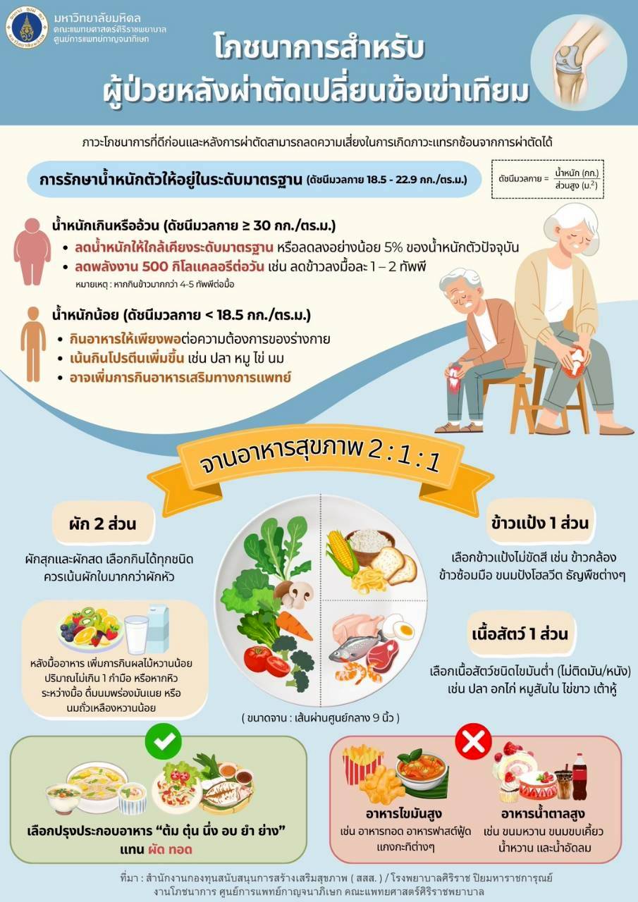 🍽️✨ดูแลตัวเองหลังผ่าตัดเปลี่ยนข้อเข่า เริ่มต้นที่ “อาหารดี & น้ำหนักตัวเหมาะสม”