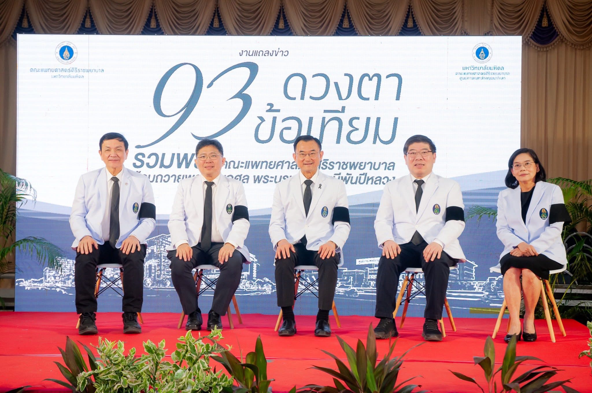 โรงพยาบาลศิริราช และศูนย์การแพทย์กาญจนาภิเษก คณะแพทยศาสตร์ศิริราชพยาบาล มหาวิทยาลัยมหิดล ผนึกกำลังครั้งยิ่งใหญ่ จัดแถลงข่าวโครงการ “93 ดวงตา 93 ข้อเทียม รวมพลังคณะแพทยศาสตร์ศิริราชพยาบาล น้อมถวายพระราชกุศลแด่ สมเด็จพระนางเจ้าสิริกิติ์พระบรมราชินีนาถ พระบรมราชชนนีพันปีหลวง” ภารกิจผ่าตัดต้อกระจก 93 ดวงตา และเปลี่ยนข้อเข่า – ข้อสะโพกด้วยหุ่นยนต์ช่วยผ่าตัด จำนวน 93 ข้อ ช่วยเหลือผู้สูงอายุด้อยโอกาส เพื่อยกระดับคุณภาพชีวิตของผู้ป่วย ให้สามารถเข้าถึงการรักษาถวายเป็นพระราชกุศล